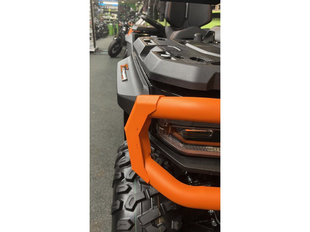 Komunikační modul T-Box* zajišťuje přenos dat z vozidla do mobilní aplikace CFMOTO Ride. Zde je zobrazena poloha stroje, historie jízd a statistika, informace o stavu vozidla, upozornění na manipulaci se strojem a další. V aplikaci také naleznete novinky ze světa GOES a informace o prodejcích a servisech. Součástí aplikace je také funkce MotoPlay, která umožňuje přenos navigace z aplikace přímo na displej vozidla.