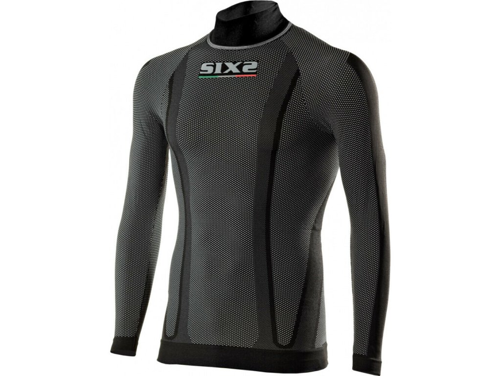 Dětské SIXS funkční tričko s dlouhým rukávem a stojáčkem pro celoroční použití při všech sportech, za všech klimatických podmínek. Tričko je určeno pro použití v kontaktu s pokožkou, pod dalším sportovním oblečením. Díky termoregulačním vlastnostem patentovaného materiálu SIXS Carbon Underwear® reguluje pocení, udržuje pokožku v suchu, působí proti vzniku zápachu a umožňuje dosažení efektivního svalového výkonu při minimalizaci rizika svalového zranění. Materiál současně zajišťuje přenos tepla a má antistatické vlastnosti, které chrání tělo před elektrickým nábojem způsobeným třením více syntetických tkanin o sebe, což je pro sportovní oblečení typické.